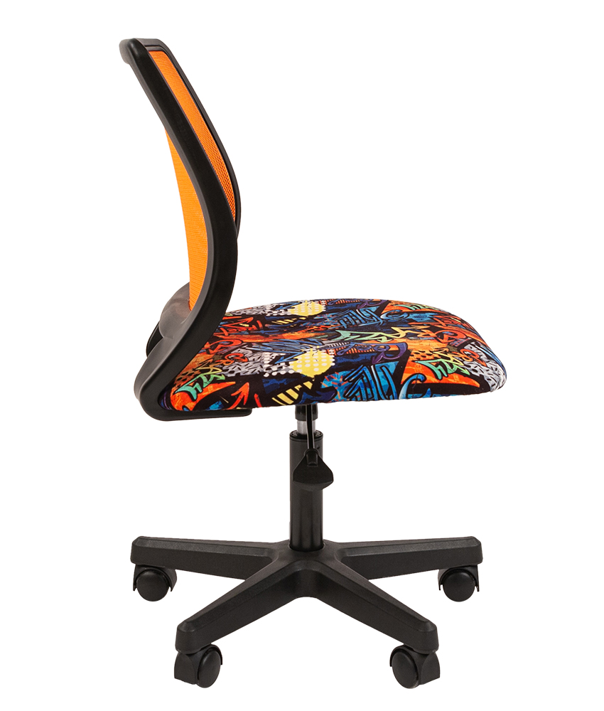 Яркая обивка выполнена из сочетания мягкого велюра на сиденье и дышащей сетки на спинке, которая пропускает гораздо больше воздуха и повышает комфорт.