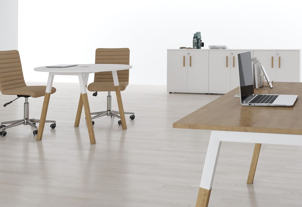 Опоры столов: комбинированный металлокаркас 40х40 мм с двумя траверсами и опорами из массива бука.