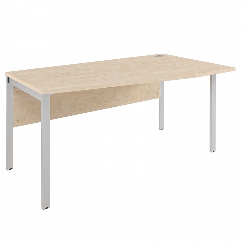 Столешница из ЛДСП т.25мм., кромка ПВХ т. 2мм., фронтальная панель из ЛДСП т. 18 мм., опоры - металлокаркас из трубы 50х25, цвет серебро. Стол комплектуется двумя заглушками.