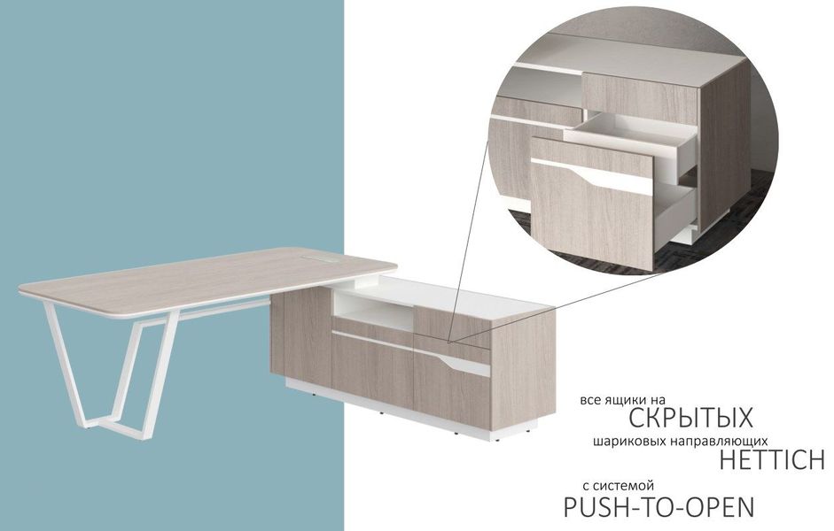 все ящики на СКРЫТЫХ шариковых направляющих с системой PUSH-TO-OPEN HETTICH