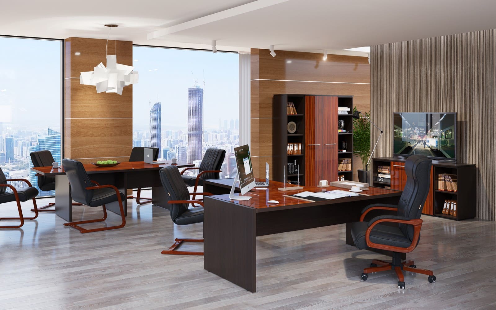 Уважаемые партнеры! В наличии в городе Иваново кабинет руководителя MORRIS в цвете "Макассар/Венге" в следующей комплектации: